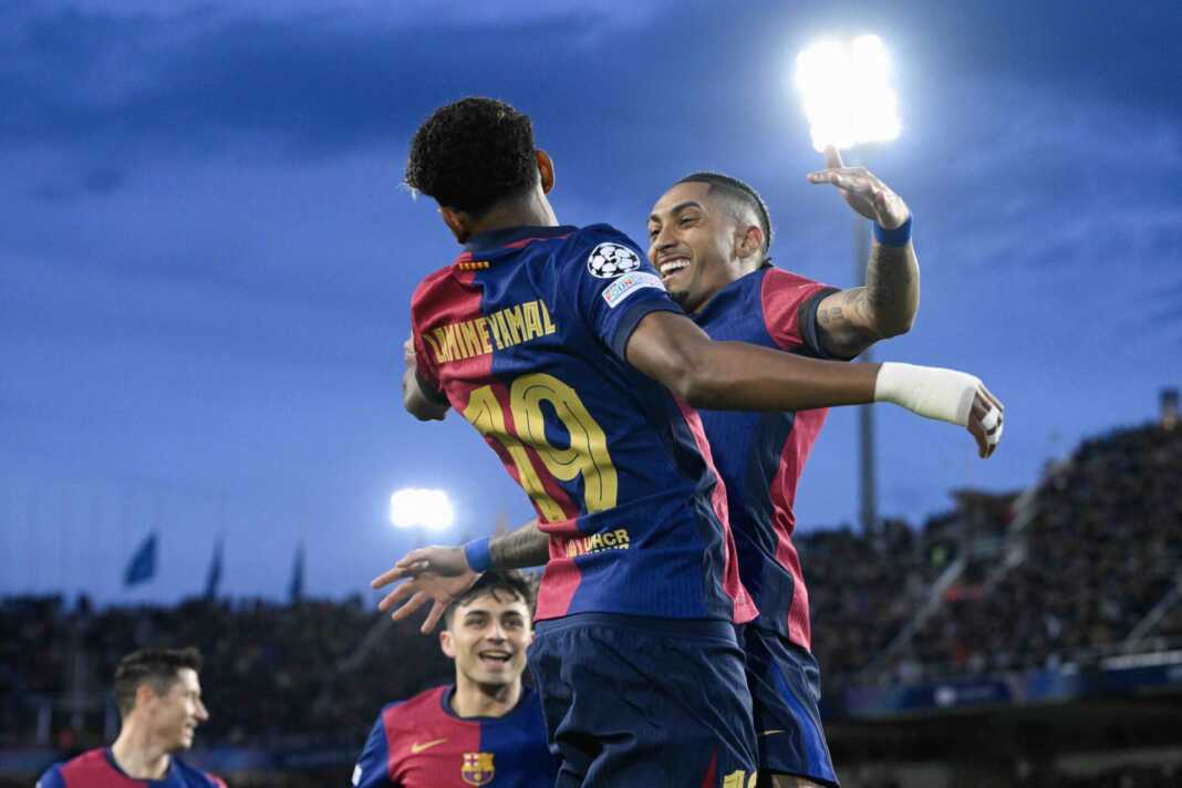 Lalu Barca kembali unggul melalui Lamine Yamal di menit ke-27. Gol kedua Raphinha hadir di menit ke-42 yang membuatnya naik ke puncak daftar top scorer sementara Liga Champions musim ini.