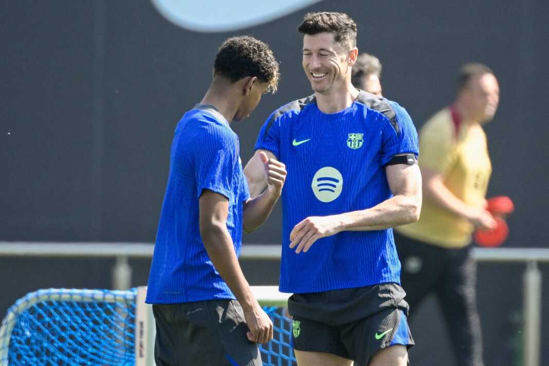 BARCELONA (4-2-3-1): 25-Szczesny (g); 23-Kounde, 2-Cubarsi, 5-Martinez, 3-Balde; 21-De Jong (c), 8-Pedri; 19-Yamal, 6-Gavi, 11-Raphinha; 9-Lewandowski