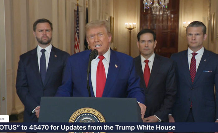 “Kami telah menyelesaikan serangan yang sangat sukses terhadap tiga fasilitas nuklir di Iran, termasuk Fordow, Natanz, dan Esfahan,” kata Trump.