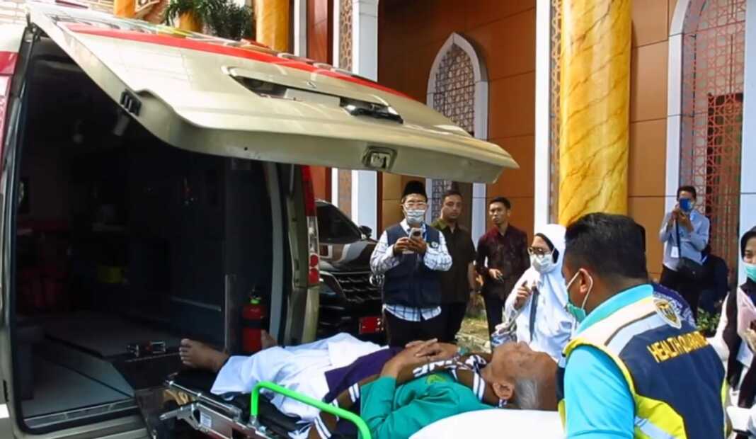 Namun di tengah proses penyambutan, dua jemaah terpaksa dilarikan ke rumah sakit karena mengalami kelelahan ekstrem setelah menempuh perjalanan panjang dari Makkah.