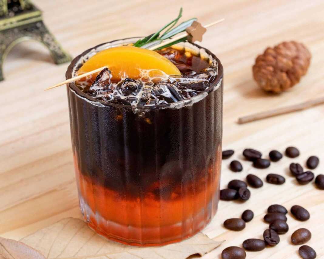 Dengan tambahan sirup peach, minuman ini menawarkan rasa manis dan aroma buah peach yang khas.