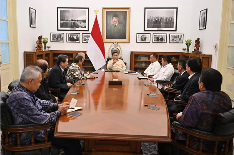 “Presiden Prabowo Subianto menerima kehadiran delapan pengusaha besar di Indonesia yang memiliki latar belakang bisnis yang berbeda-beda, antara lain Bapak Anthony Salim, Bapak Sugianto Kusuma, Bapak Prajogo Pangestu, Bapak Boy Thohir, Bapak Franky Widjaja, Bapak Dato Sri Tahir, Bapak James Riady, dan Bapak Tomy Winata di Istana Kepresidenan Jakarta, pada Kamis, 6 Maret 2025,” tulis Teddy.