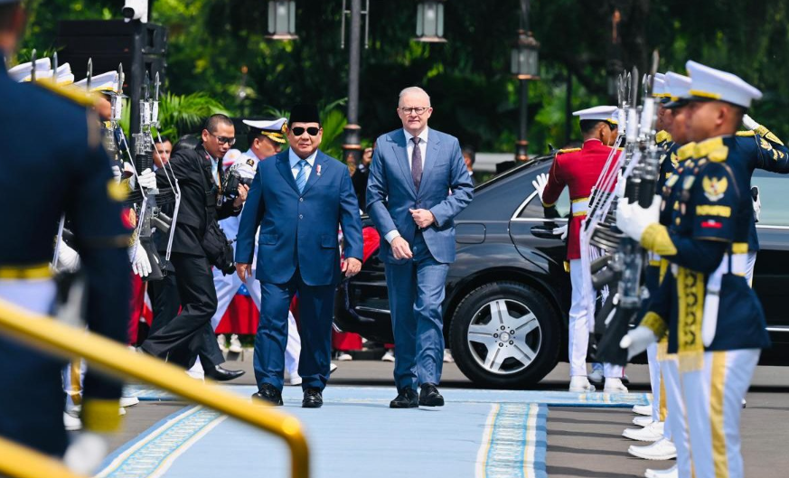 Presiden Prabowo Subianto menyambut langsung kedatangan PM Albanese dalam upacara penyambutan resmi di halaman Istana Merdeka. Setelah melakukan inspeksi pasukan, keduanya menggelar pertemuan tête-à-tête di ruang kerja Presiden Prabowo.