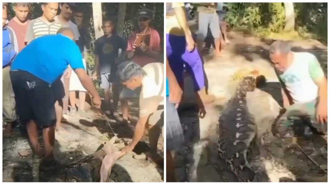 Tubuh La Noti ditemukan dalam kondisi mengenaskan tertelan seekor ular piton sepanjang lebih dari 8 meter.