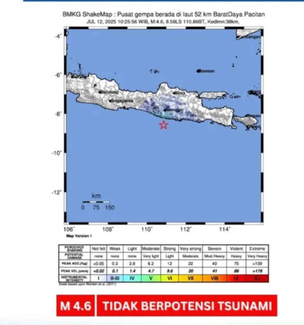 Gempa Dangkal Magnitudo 4,6 Guncang Selatan Jawa, Pacitan Bergetar, BMKG Imbau Masyarakat Tetap Tenang