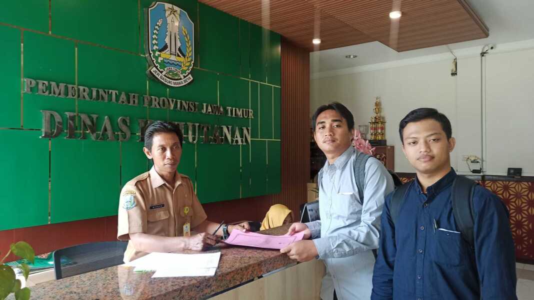 Dua aktivis tersebut, yakni Riski Slamet Hartanto dan Dimas Tri kurniawan, diterima perwakilan tata usaha Dinas Kehutanan Suroso sekitar pukul 11.00.