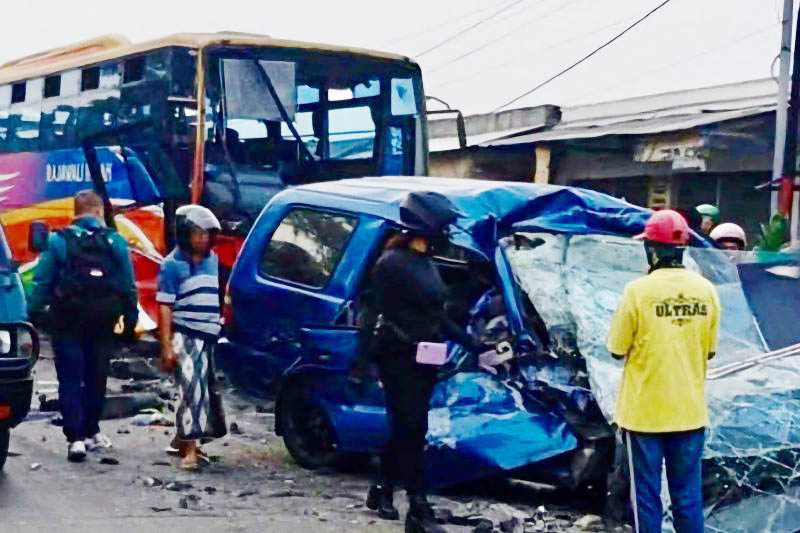 Nahas saat bersamaan dari arah berlawanan melaju bus PO Rajawali Indah dengan kecepatan tinggi. Benturan keras menyebabkan bagian depan kedua kendaraan rusak parah.