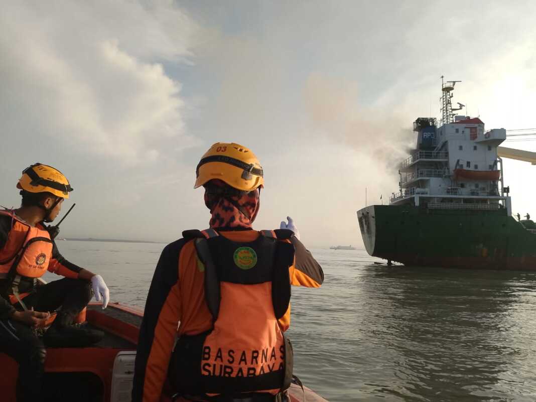 “ABK telah berupaya memadamkan api dengan Alat Pemadam Api Ringan (APAR), namun api tak kunjung padam. Kejadian ini kemudian dilaporkan ke VTS Surabaya dan diteruskan ke instansi terkait, termasuk Basarnas Surabaya,” jelas Nanang.