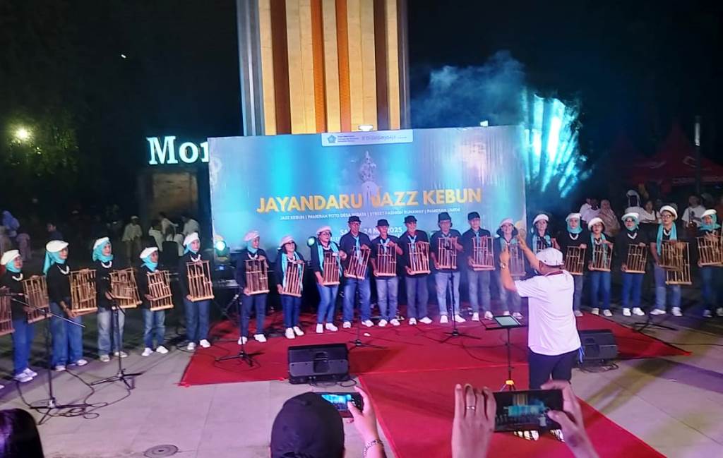 Tak hanya itu, acara ini juga dimeriahkan oleh penampilan unik Jazz Angklung yang dimainkan oleh para musisi senior berusia di atas 50 tahun dari mitra komunitas Disbudporapar.