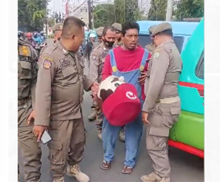 Personel Satpol PP langsung menyergapnya. Lelaki itu hendak berontak, tapi kalah kuat. Dia meronta-ronta, namun tetap kalah tenaga. Yang bisa dilakukan hanya berteriak memprotes penangkapan itu.