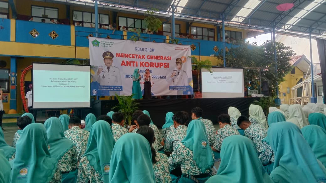 Sosialisasi ini dilakukan oleh tim pendidikan anti korupsi dari Inspektorat Kabupaten Sidoarjo. Mereka rutin menggelar road show menyampaikan bahaya korupsi kepada para pelajar.