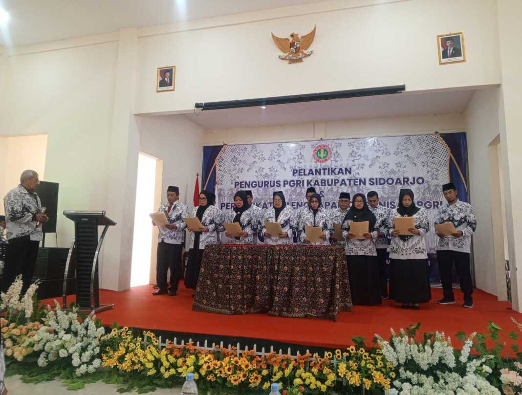 METROTODAY, SIDOARJO — Pengurus Persatuan Guru Republik Indonesia (PGRI) Kabupaten Sidoarjo masa bakti 2025–2030 resmi dilantik pada Kamis (19/6) di Gedung PGRI Delta Graha Dwija, Kabupaten Sidoarjo. Acara pelantikan dipimpin oleh Ketua PGRI Jawa Timur, Djoko Adi Waluyo.