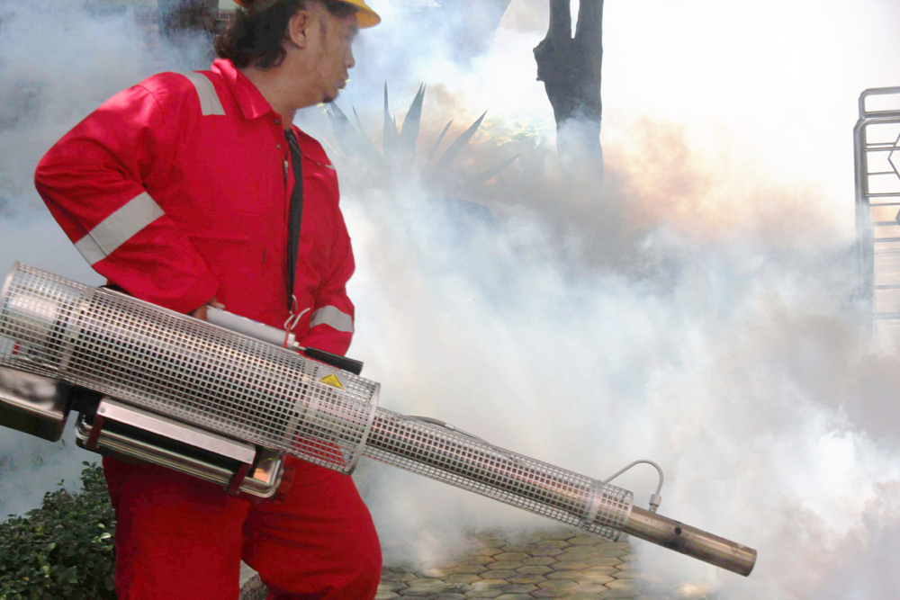 Fogging dilakukan di beberapa titik di Asrama Haji Sukolilo Surabaya, meliputi halaman luar, parit, hingga kamar yang akan digunakan calon jemaah haji untuk menginap sebelum berangkat ke Arab Saudi.