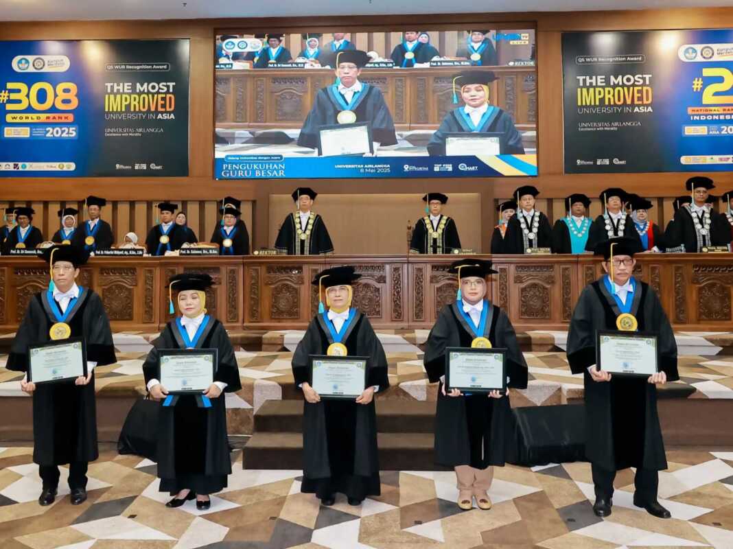 METROTODAY, SURABAYA – Universitas Airlangga (Unair) kembali menorehkan prestasi akademik gemilang dengan mengukuhkan lima guru besar baru dari Fakultas Sains dan Teknologi (FST) pada Kamis (8/5).