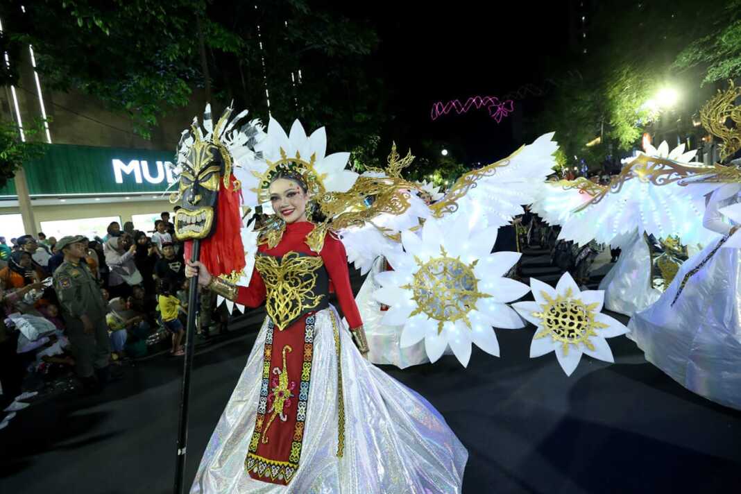 Mengusung tema ‘Light Culture Parade’, para peserta karnaval tidak hanya memamerkan pakaian adat, tetapi juga menampilkan keberagaman seni dan budaya dari kota asal mereka.