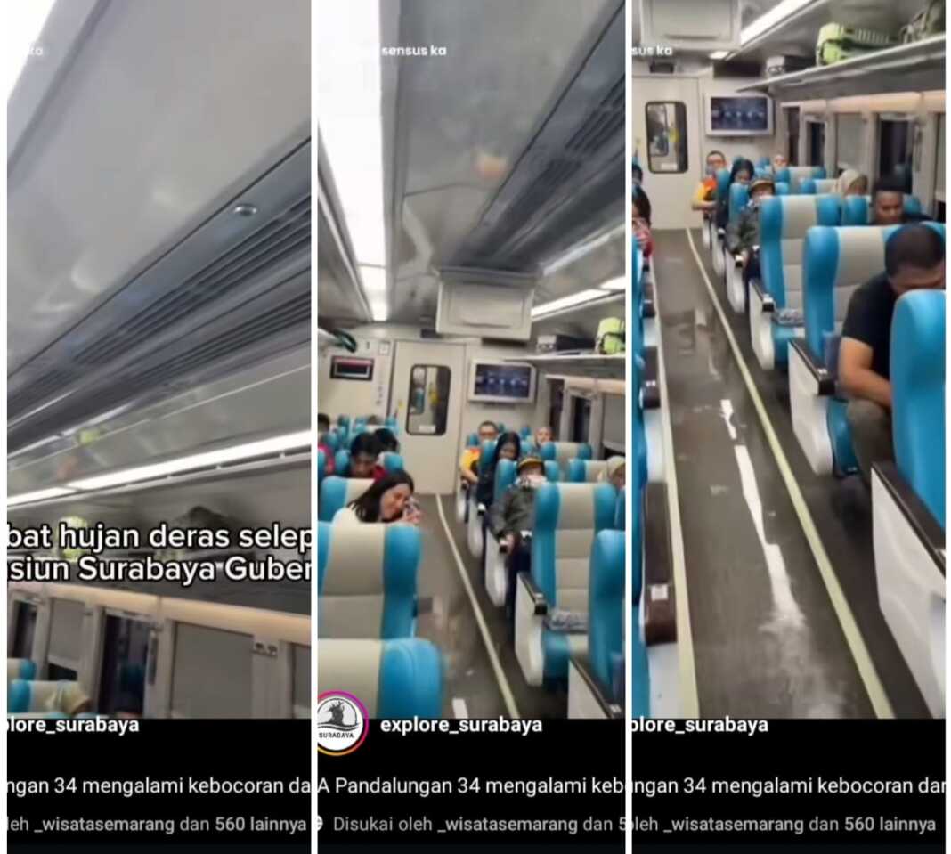 METROTODAY, SURABAYA – Sebuah video viral di Instagram @explore_surabaya pada 17 Mei 2025 memperlihatkan kebocoran air hujan di dalam gerbong Kereta Api (KA) Pandalungan.