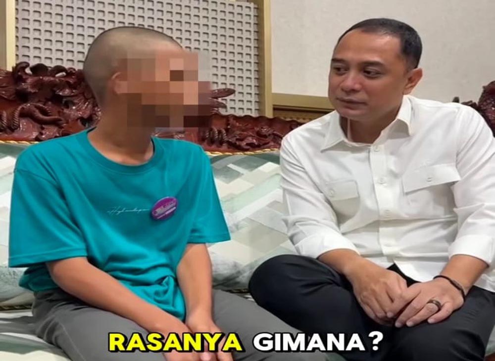 “Ojo ngelem le…Ojo ngelem. Mengko paru-parumu rusak,” kata Eri Cahyadi lantas memegang kepala seorang anak dengan potongan gundul.