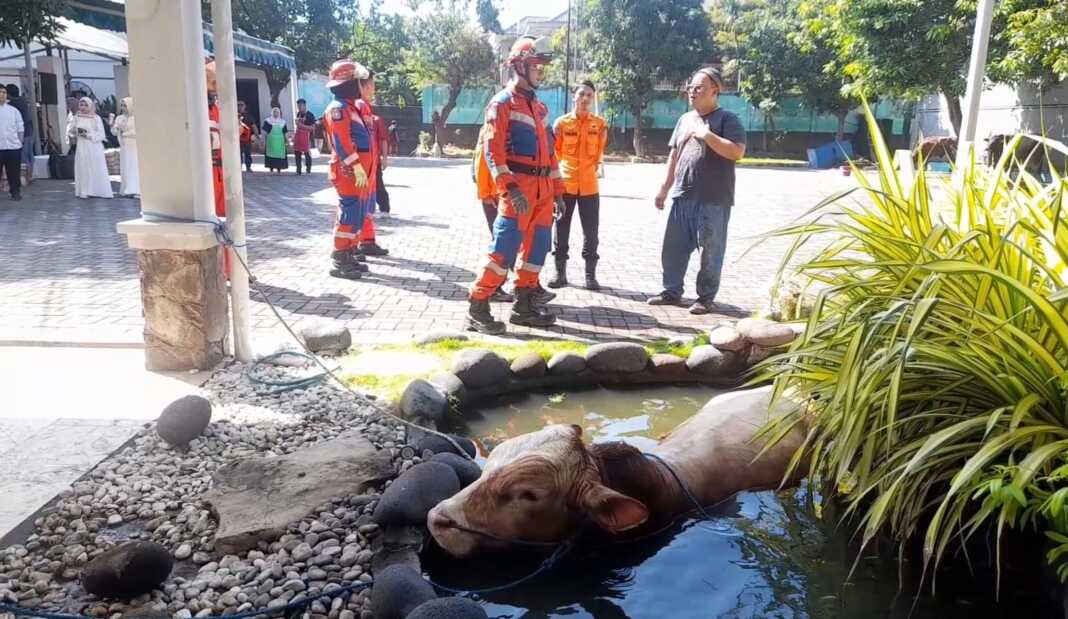 “Karena panik, sapi ini langsung menceburkan diri ke kolam,” tuturnya.