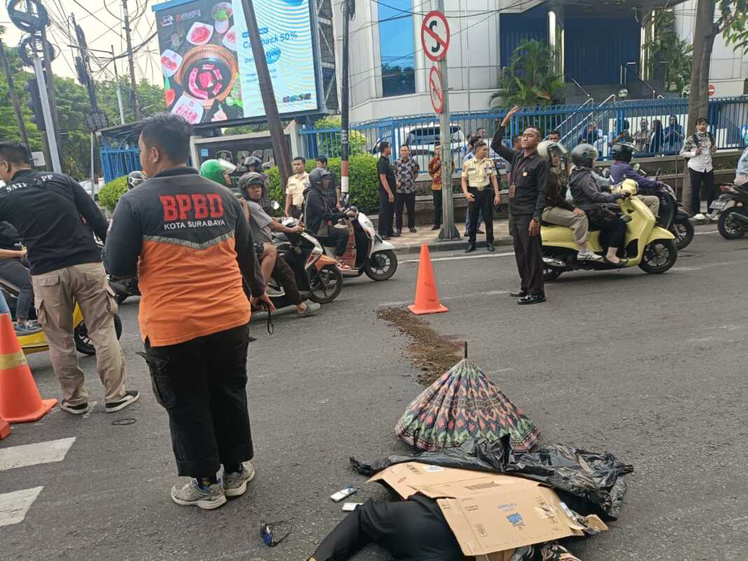 METROTODAY, SURABAYA – Kecelakaan lalu lintas yang melibatkan sepeda motor dan pejalan kaki terjadi di Jalan Dr. Soetomo No. 118, Kecamatan Darmo, Surabaya, Kamis (19/6) sekira pukul 15.11 WIB. Satu korban tewas di tempat kejadian perkara (TKP).