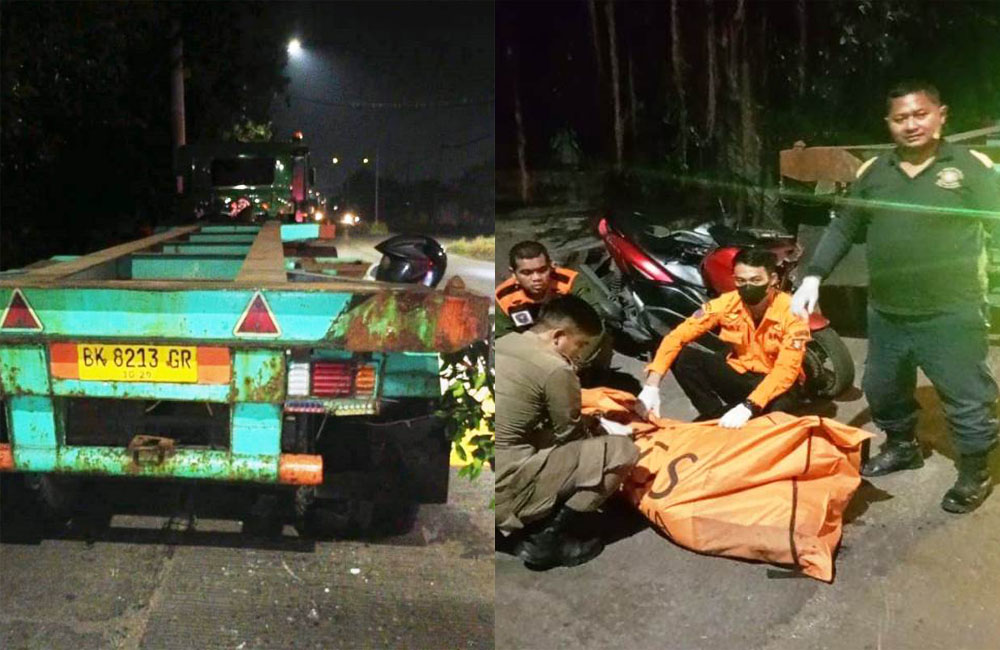METROTODAY, SURABAYA – Kecelakaan lalu lintas antara sepeda motor Yamaha N-max berplat nomor M 6626 HT dengan sebuah trailer asal Medan dengan nopol BK 8213 BR terjadi di Jalan Tambak Langon No. 20, Surabaya, Minggu (22/6). Kecelakaan tersebut mengakibatkan satu pengendara motor tewas.