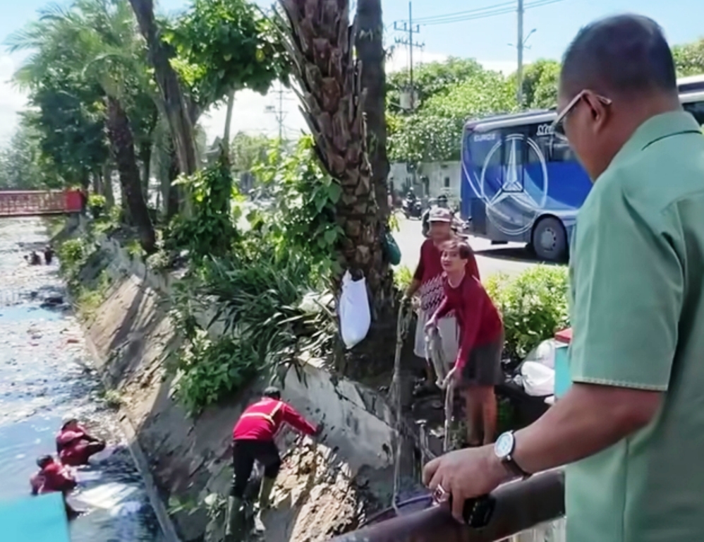 Wakil Wali Kota Surabaya Armuji bahkan turun langsung meninjau kondisi sungai dan memberikan imbauan kepada masyarakat.