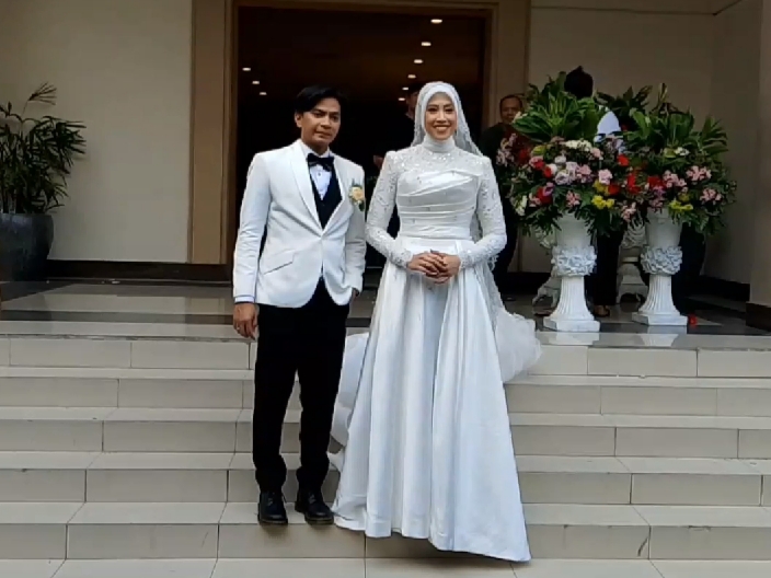 Megawati dan Dio memasuki pelaminan sekitar pukul 10.00 WIB dan disambut hangat oleh para tamu undangan.